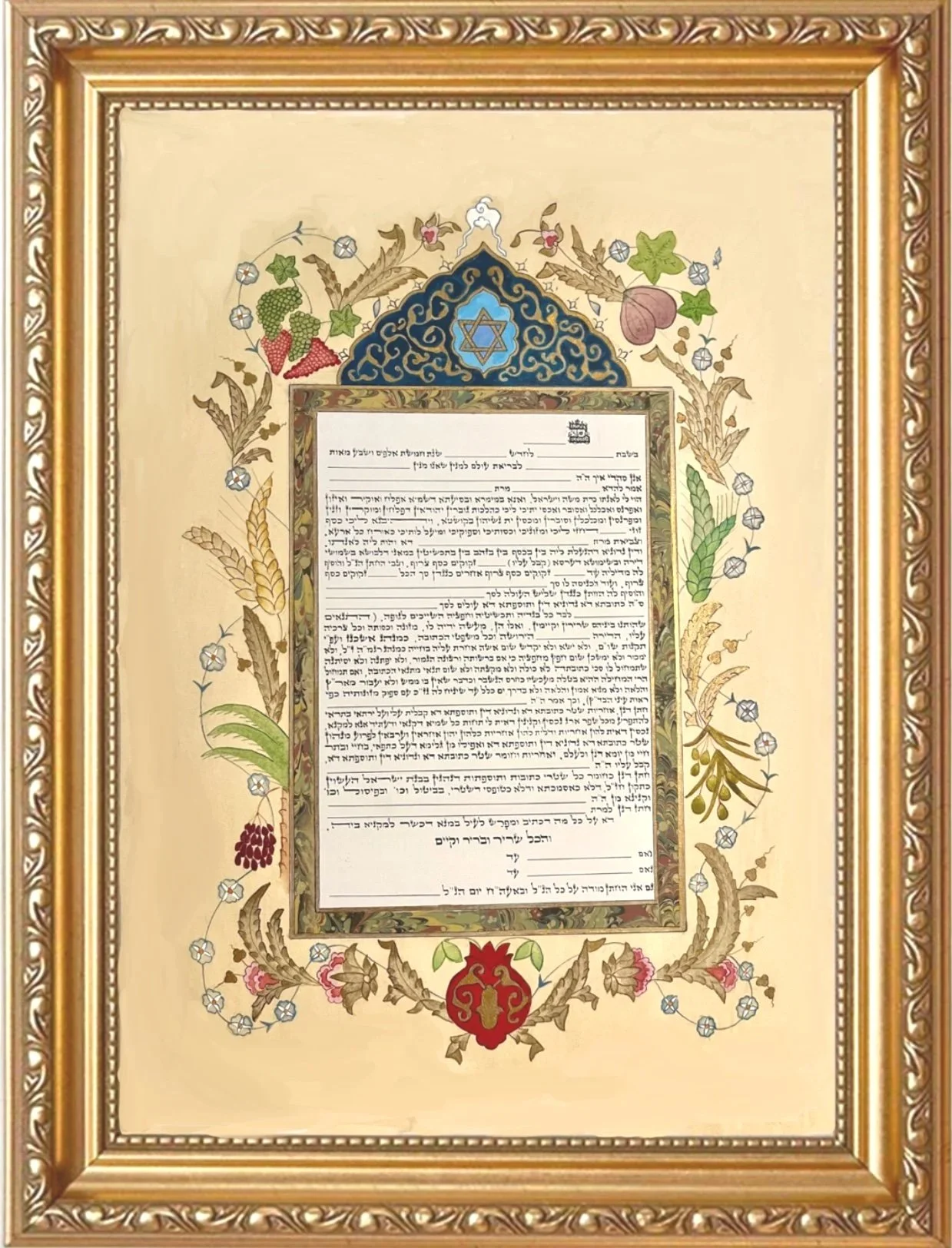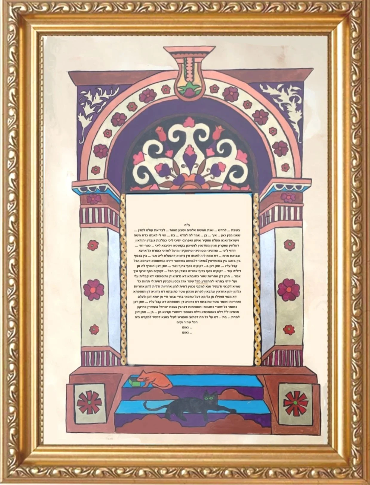 You can request a completely new design, or a modification of an existing design from the featured collection. Raquy also can do a “ketubah makeover” - redoing the art around a ketubah from the past.